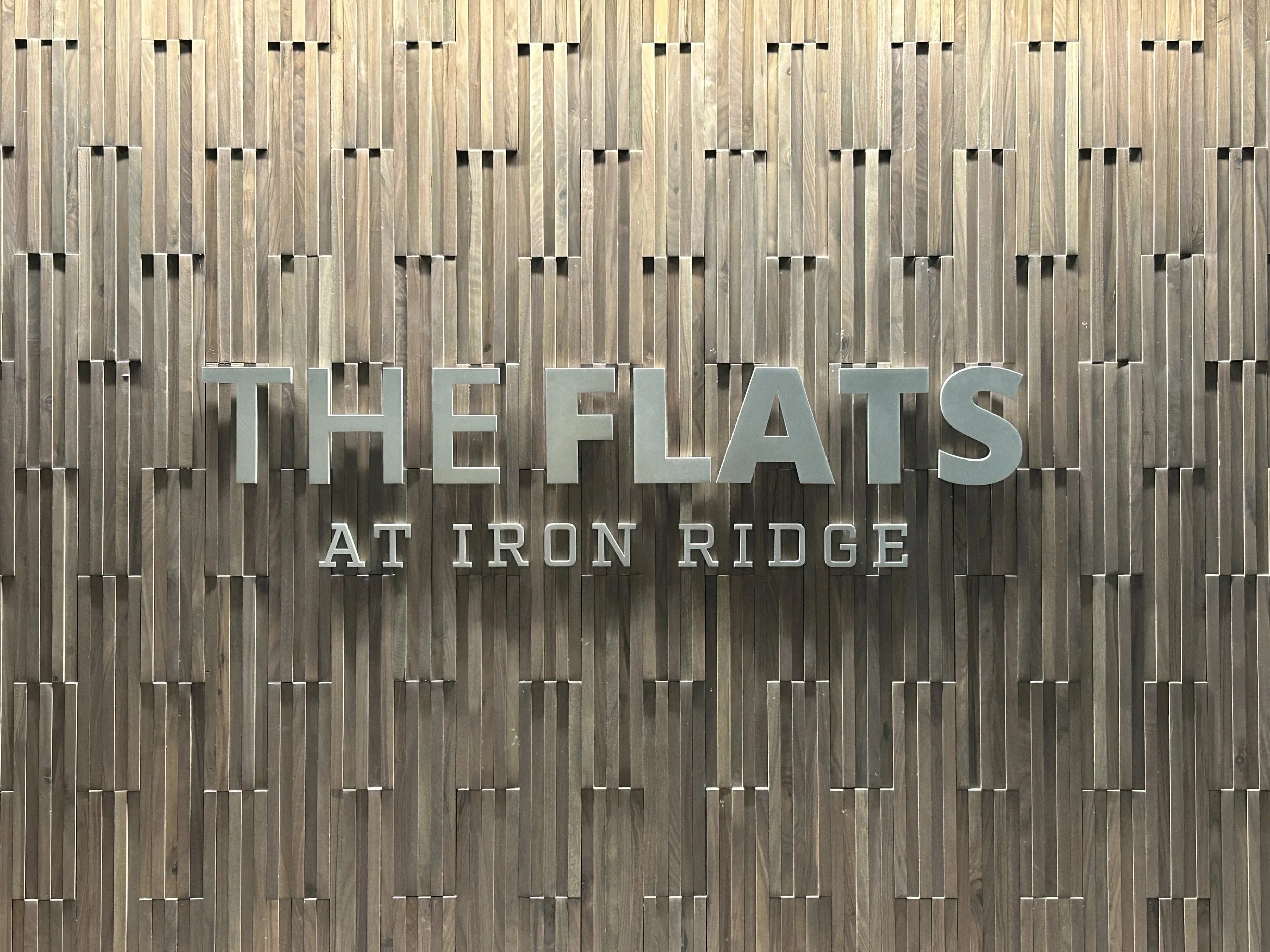 Interior and exterior signage program for Iron Ridge Flats.